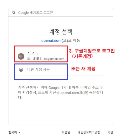 3. 기존 계정으로 로그인하거나 다른 계정을 선택하여 줍니다.