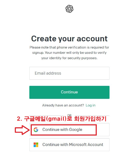 2. 구글메일(지메일,gmail)로 회원가입을 누르고,